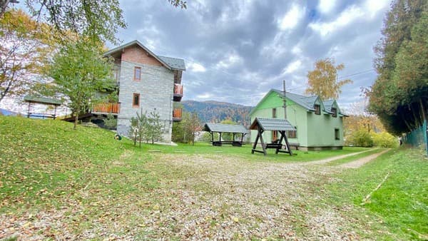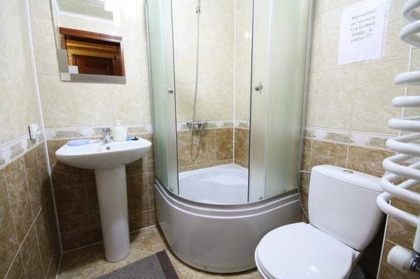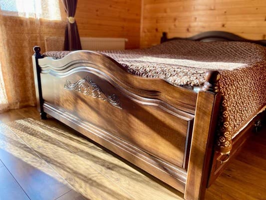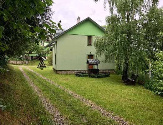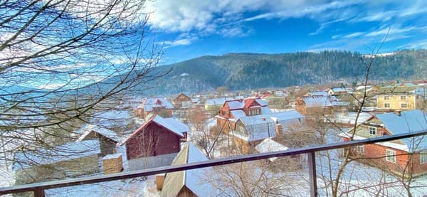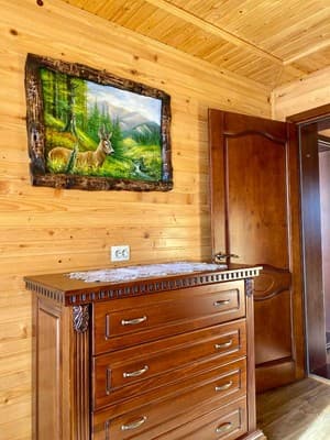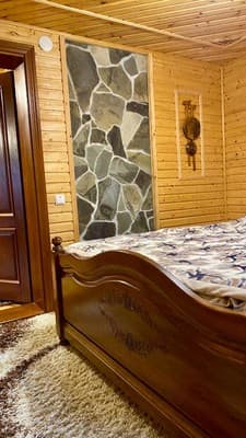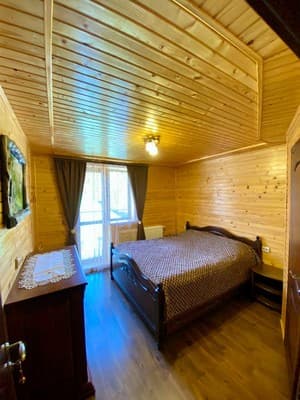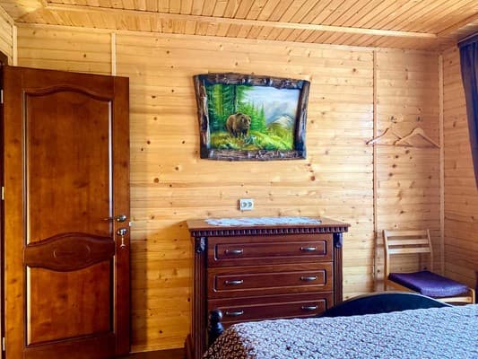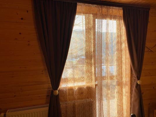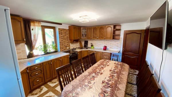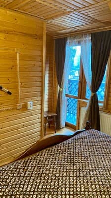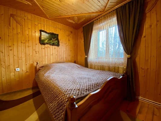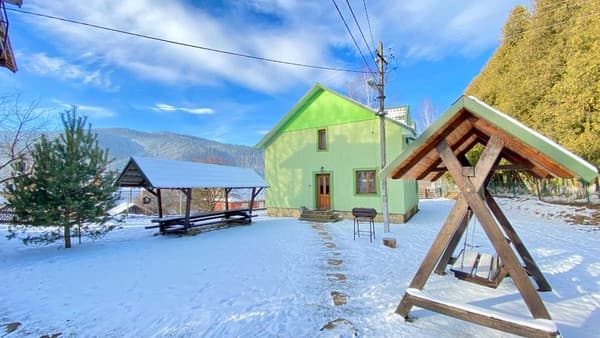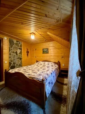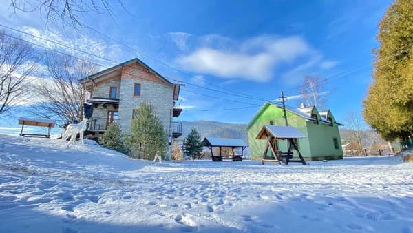 В карпатском поселке Микулин, находится частная усадьба “Горянка”. Большой коттедж насчитывает 7 уютных номеров с деревянной отделкой, что размещены на 2-х этажах и могут вместить до 14 отдыхающих. Первый этаж имеет полноценную кухню с нужной техникой, посудой, кухонной мебелью и телевизором, три спальни с большими кроватями, спутниковым ТВ, шкафами, раскладными креслами в двух из них. Второй этаж занимает гостиная с телевизором и обеденным столом, две спальни, оборудованные, как на первом этаже и две спальни, что дополнены балконами. На каждом этаже расположено по две ванные комнаты, выполненные в современном стиле. По всей усадьбе доступен свободный WiFi. У гостей есть возможность отдыхать на летней террасе, готовить на мангале. Дополнительно гостям доступны: услуги прачечной, вызов такси, организация экскурсий, прогулок на лошадях, походов в лес и горы, бесплатная парковка. Недалеко находится магазин, кафе, хорошая сауна и пункт проката лыжного снаряжения. Расстояние до центра Микуличина-1 км, до ж/д станции-3 км, до подъемников ТК Буковель-20 км.