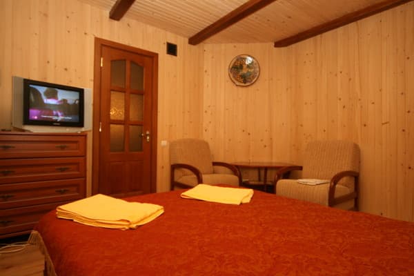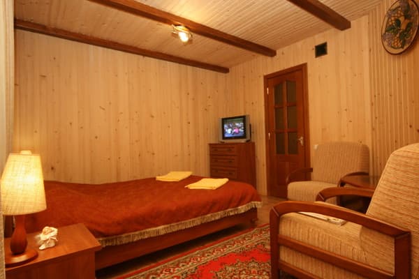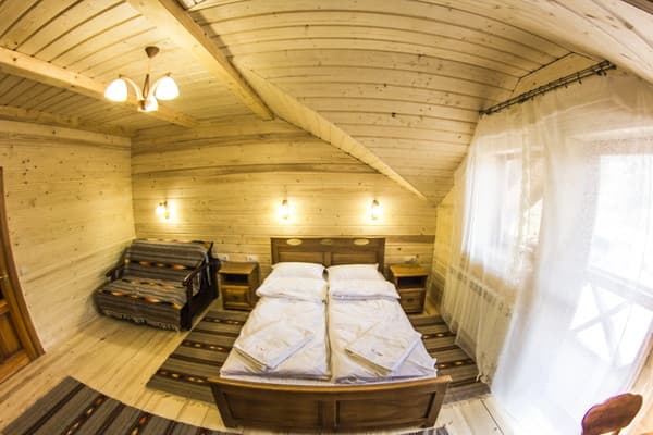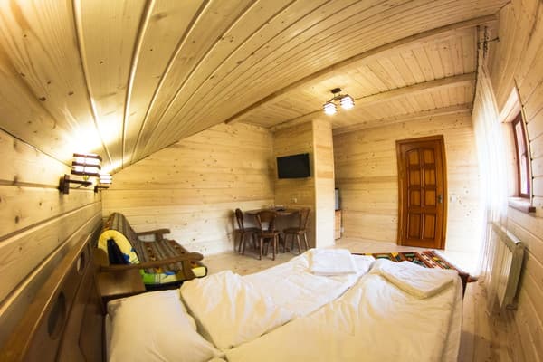 “Круг Друзей” - это гостиный двор в туристическом центре Прикарпатья - Татарове. К услугам гостей два коттеджа, которые рассчитаны для комфортного проживание 26 туристов. Коттедж No1 состоит из многоместных комфортабельных номеров и кухни-столовой для общего пользования, которая оборудована необходимой бытовой техникой и набором столовой посуды. В коттедже No2 на первом этаже обустроен номер люкс с камином, а на втором этаже апартаменты класса “полулюкс” с отдельными входами со двора. За дополнительную плату можно заказать питание у хозяев. Для отдыхающих с детьми предусмотрена игровая площадка. Во дворе есть мангал и беседка, а также место для парковки автомобиля. Летом работает бассейн. С владельцами усадьбы можно договориться о проведении экскурсий, походов в лес, катании на санках. Ближайший подъемник расположен в пгт Ворохта - 4 км, а расстояние к ГК ”Буковель” - 14 км