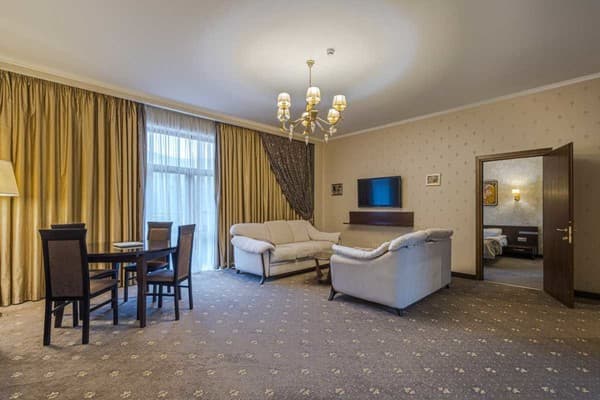 В центре зеленой жемчужины Карпат, городе Яремче, находится роскошный спа-отель "Romantik Spa Hotel". Гостиничный комплекс на 6-и этажах предлагает 105 номеров высшей категории, рассчитанные на проживание от 2-х до 4-х гостей. Номера европейского уровня оборудованы двуспальной кроватью, шкафом, большим телевизором, сейфом, мини-баром, бесплатным Wi-Fi и ванной комнатой с полным комплектом туалетных и косметических принадлежностей. Номера “люкс” дополнены балконом, который оснащен креслами и столиком и гостиной с мягким уголком и телевизором. Просторные “апартаменты” располагают тремя комнатами с красивой мебелью, полноценной кухней, террасой с зоной отдыха и большим санузлом с ванной. В стоимость номеров входит завтрак -шведский стол, ужин и посещение в спа-зоне бассейна и сауны. При отеле работает большой ресторан, где готовят оригинальные блюда, паб, изюминкой которого есть пиво “Панське”, собственного производства, а также можно попасть в гриль зону на пикник. Есть возможность арендовать 3 конференц-зала для проведения семинаров и конференций. А в великолепной спа-зоне можно посетить соляную комнату, сауны, бассейны, пройти разные косметические и массажные процедуры. Из спортивного досуга предлагается: теннис, бильярд и занятия в фитнес клубе. Дополнительно гостям доступны заказ трансфера, организация экскурсий, уход за детьми, бесплатное парковочное место. Дети до 9-и лет размещаются бесплатно. Расстояние к автовокзалу Яремче-2 км, до ГК Буковель-30 км.