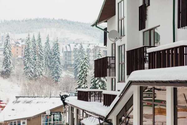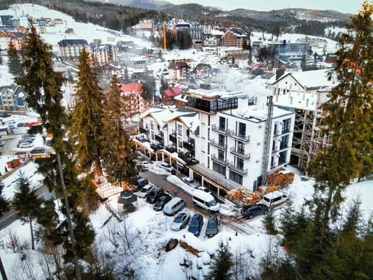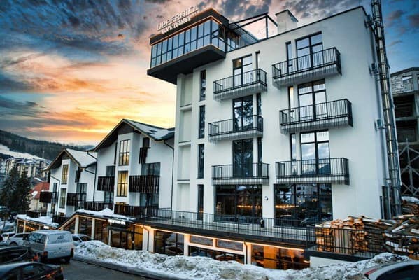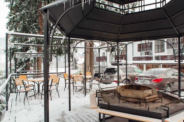 На территории апартаментов есть ресторан, рассчитан на 110 человек, где гости могут заказать все, что захотят в любое время суток. Также в общем доступе находится специальная комната, предназначена для того, чтобы хранить в ней лыжное снаряжение. Для того чтобы зарегистрироваться в удобное для приезжих время, стойка ресепшн работает круглосуточно. В стоимость номера включен континентальный завтрак.