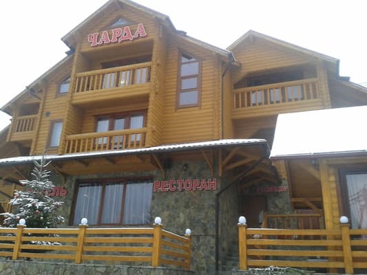 В центральной части поселка Поляница находится небольшая гостиница “Чарда”. В новом здании на 3 этажа могут принять почти 50 отдыхающих, в 15 номерах, что рассчитаны на проживание от двух до 4-х гостей. Номера разной категории оборудованы удобной мебелью, телевизором со спутниковым ТВ, свободным Wi-Fi. Ванные комнаты оснащены всем необходимым. При гостинице работает ресторан с банкетным залом, удобный для проведения разных праздников. Заказ питания оплачивается дополнительно. На территории можно отдохнуть в беседке, приготовить мясо на мангале или покататься на качели. Гостям доступны услуги прачечной, проката лыжного снаряжения. При отеле есть парковка. Расстояние к подъемникам ГК Буковель-2,3 км, до автовокзала в г.Яремче -35 км.