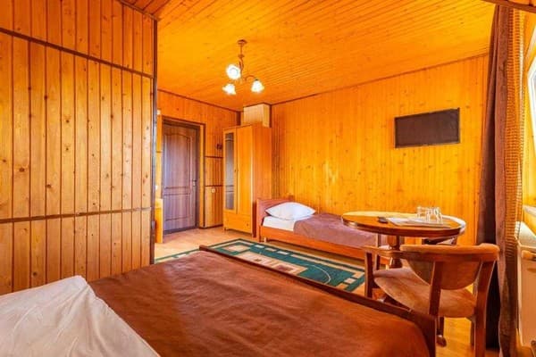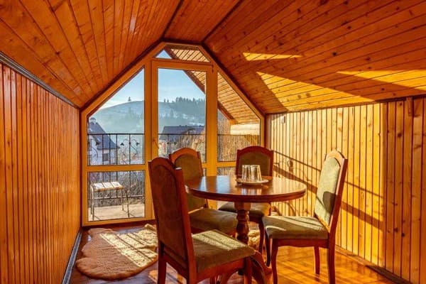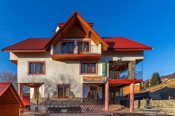 Вблизи горнолыжного комплекса Буковель расположилась небольшая, но по-домашнему уютная "Гуцульська світлиця". Отель состоит из номеров разной категории, выполненных из дерева и рассчитанных на поселение от двух до четырех гостей. Все номера имеют балконы и оборудованы двуспальными кроватями, телевизором и свободным Wi-Fi. В ванных комнатах предложены все необходимые туалетные принадлежности. При гостинном дворе есть кафе и ресторан. Гостям предоставляется континентальный завтрак. Для семейного отдыха приспособлены зона отдыха с фонтаном, батутом и детской площадкой. Можно воспользоваться мангалом, а вечером полноценно расслабится в сауне. На территории есть парковка. Расстояние к подъемнику R1 - 2 км, до Ивано-Франковска - 95 км.