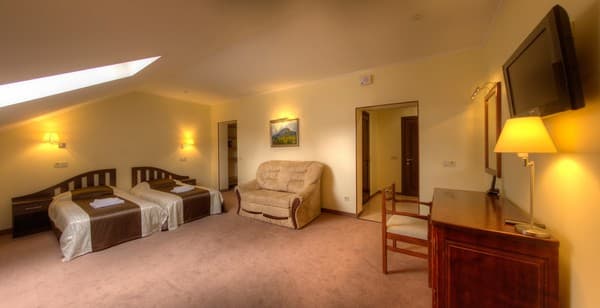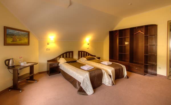 В центре популярнейшего карпатского курорта Буковель, расположена роскошная гостиница "Home Hotel". Отель насчитывает 17 двухместных номеров разной категории, из больших окон, которых видны потрясающие горы. Просторные номера оборудованы одно, двуспальными кроватями, большим телевизором, мини-баром и сейфом. В отеле есть проводной интернет и доступ Wi-Fi. Ванные комнаты приспособлены к удобному пользованию. Попробовать вкусные блюда можно в ресторане “Козачок”, что в 2-х минутах от гостиницы. Гостям доступны услуги прачечной, проката и сушки снаряжения и заказ трансфера. Отель располагает свое финской сауной с джакузи и удобной зоной отдыха. Для автомобилей оборудована парковка. Расстояние до подъемника R2 -250 м, R7 -250 м, до г.Яремче-35 км.