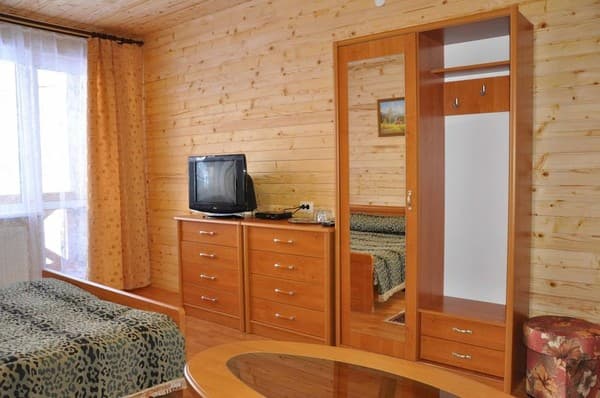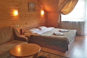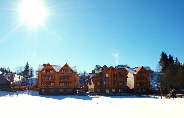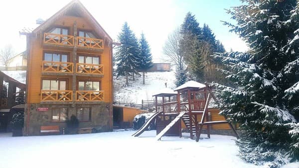 В двух минутах езды от лыжных трасс популярнейшего Буковеля, в поселке Поляница, находится частная усадьба “Карпатские зори”. Комплекс состоит из 25 уютных номеров средней категории, рассчитанных на проживание от двух до трех гостей. Светлые номера с балконами, оборудованы одно и двуспальными кроватями, телевизором со спутниковым ТВ и свободным Wi-Fi. В ванных комнатах с душевыми кабинами, предлагается весь набор туалетных принадлежностей. В местном кафе можно заказать классические блюда. Усадьба располагает большой гостинной с камином и телевизором. Во дворе для гостей обустроена зона отдыха с беседкой и мангалом, а для детей-детская площадка и качели. Вечером можно оздоровиться в большой сауне с бассейном. Гостям доступны услуги прачечной, заказ комплексного питания, прокат снаряжения, заказ трансфера, организация экскурсий. На территории усадьбы предусмотрена автостоянка. Расстояние к подъемнику R1-1,3 км, до продуктового магазина -100 м, до центра г.Яремче -37 км.