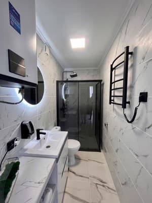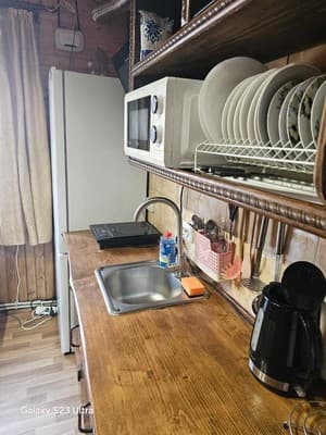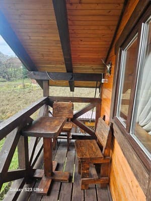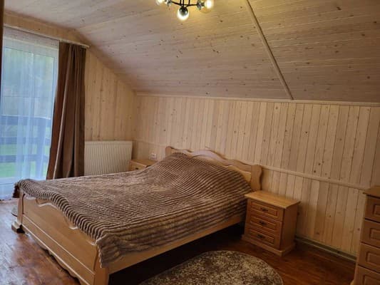 Отличительной особенностью коттеджа являются панорамные окна, которые открывают прекрасный вид на мост-виадук. 2 номера рассчитаны на поселение трех гостей, цена за проживание 550 грн за ночь. Номера укомплектованы: