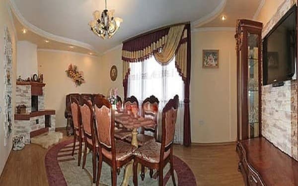 В уютном районе карпатской Лазещины находится коттедж "Мирослава". Усадьба состоит из двух коттеджей, в одном из которых на 2-х этажах размещены 5 двухместных номеров, а во втором на 3-х этажах 7 двух и трехместных номеров. Первый этаж меньшего дома занимает элегантная гостиная с камином, телевизором и банкетным столом, современная большая кухня, где можно готовить, комната с двуспальной кроватью и спутниковым ТВ, а также удобная ванная комната. Второй этаж содержит номер с двуспальной кроватью, 3 номера с раскладными диванами и просторный санузел. Второй коттедж имеет на первом этаже удобную кухню, столовую и ванную комнату с душевой кабиной и биде. На втором и третьем этаже размещены комнаты для одного, двух и трех гостей с удобной мебелью, спутниковым ТВ и современными санузлами на этаже. Для любителей пикников во дворе обустроена зона отдыха с беседкой и мангалом. Для оздоровления можно посетить сауну с контрастным бассейном. Дополнительно гостям доступны: услуги няни, заказ питания, организация экскурсий, трансфер, интернет, бесплатная парковка. До ближайшего кафе 2 мин ходьбы, до магазина-5 мин. Расстояние до ГК Буковель-15 км, до ТК Драгобрат-15 км.