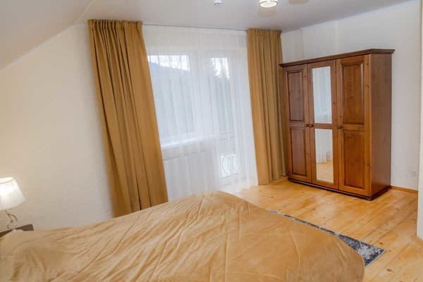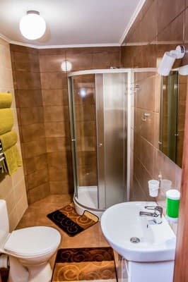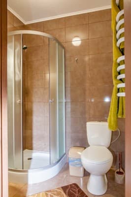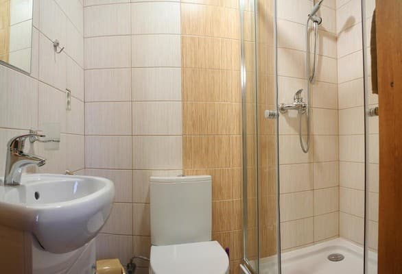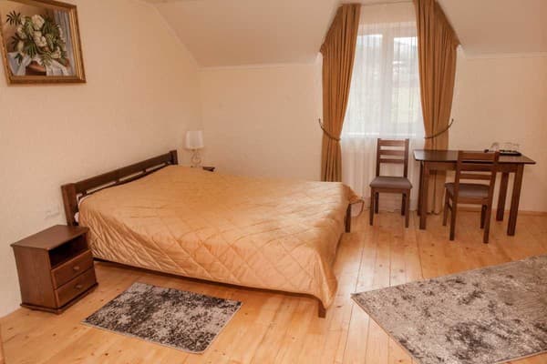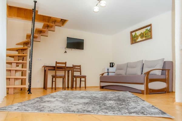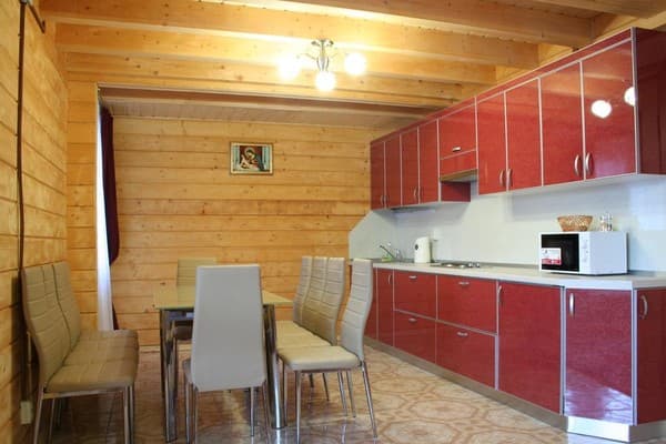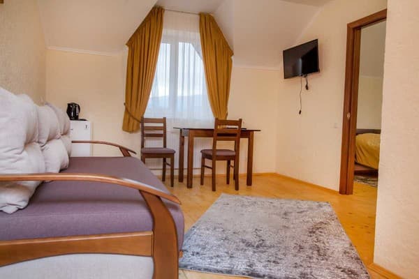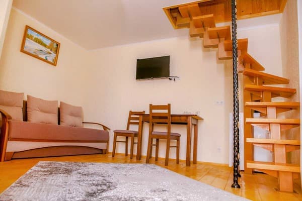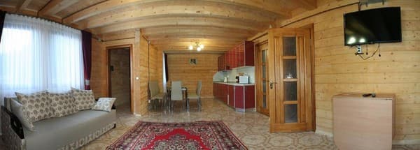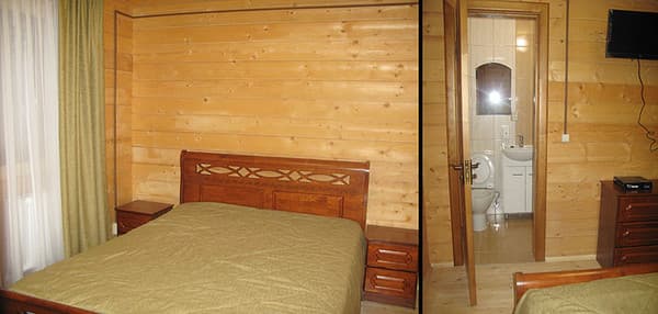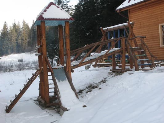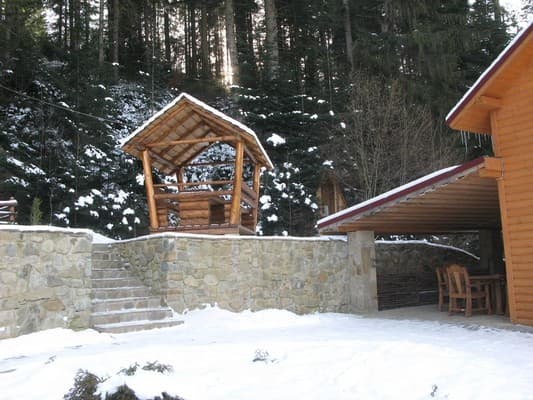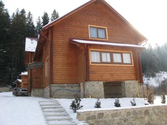 В уютном районе Микуличина, недалеко от реки, расположилось шале "Центория". Комплекс насчитывает несколько деревянных коттеджей, где можно поселиться в 3-х или 5-и комфортных номерах. В коттедже, рассчитанном на проживание 8-и гостей на первом этаже удобно готовить и ужинать на современной кухне, смотреть телевизор в гостиной на мягком диване, поселиться в уютном номере с элегантной мебелью, спутниковым ТВ и ванной комнатой, сияющей чистотой. Также первый этаж располагает общим санузлом. Второй этаж имеет гардеробную и два номера, как на первом этаже с индивидуальными санузлами. Коттедж для 12 отдыхающих, отличается наличием на первом этаже двух номеров с ванной комнатой, что меблированы, как в первом коттедже, и трех таких же номеров на втором этаже. На территории комплекса можно приготовить шашлыки на мангале, а спортивные развлечения представлены бильярдным столом. Чтобы расслабится и оздоровиться, можно посетить хорошую сауна с бассейном. Дополнительно предоставляются:услуги прачечной, прокат горнолыжного снаряжения, транспортные услуги, организация походов, услуги экскурсовода, бесплатная парковочное место. Кафе и магазин расположены в 10 мин ходьбы. Расстояние до центра поселка-2 км, до подъемников Яремче-12 км, до ТК Буковель-23 км.