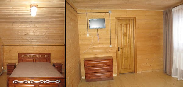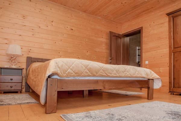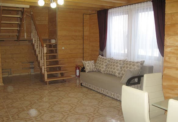 Дети размещаются бесплатно. Есть два дополнительных спальных места в каждом коттедже (диван в гостинной).