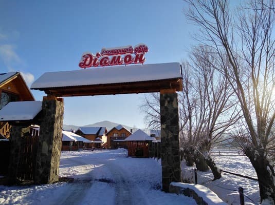 В селе Микуличин, в этом горном крае находится гостиный двор «Диамон». Расположился отель в 250 м от трассы. К центру села 1 км, к Буковелю 25 км. Гостиный двор представляет собой 6 2-х этажных коттеджей, которые рассчитаны на 100 персон. На первом этаже находится гостиная комната с действующим камином, мини-кухня с плитой и посудой. Разрешается пользоваться микроволновкой, электрочайником. На втором этаже расположились уютные номера. Все они хорошо меблированы, обустроены техникой, ванной комнатой, балконом. Гости могут воспользоваться бесплатным Интернетом, мангалом, альтанками для отдыха. Гостиный двор находится под охраной, подача воды осуществляется круглосуточно. К услугам отдыхающих предоставляется: сауна, колыба. В колыбе есть банкетный зал на 120 персон. Возле «Диамона» находится лес, речка, недалеко расположились кафе, бар и ресторан. К автостанции и ж\д вокзалу в Яремче 9 км.