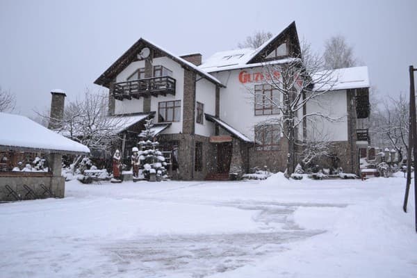 Удобно расположилась у леса и реки в карпатском Микуличине, новая гостиница “Хата Гуцула”. Современный отель на 4-х этажах содержит 9 номеров от стандарта до высшей категории. Первый этаж занимает ресторан, где подают блюда национальной кухни. Второй этаж содержит бильярдную комнату, двухместные номера с двуспальной кроватью, телевизором и санузлом с теплыми полами и номера “полулюкс”, что дополнены раскладным диваном, креслами и балконом. Третий этаж оснащен такими же номерами, что и второй этаж. На четвертом этаже находится просторный номер пентхаус, для 4-х гостей, где есть мягкая мебель, большой телевизор, двуспальная кровать, выход на балкон, ванная комната с набором туалетных принадлежностей и косметики, а также джакузи. По всему отелю доступен свободный Wi-Fi. На территории можно воспользоваться мангалом и бесплатной парковкой. Для оздоровления гостям предоставляется хорошая сауна, что находится на первом этаже, а также крытый бассейн. Из дополнительных услуг доступны: услуги прачечной, аренда конференц-зала, сейф, заказ трансфера, организация экскурсий, прогулок на лошадях, походов в лес и горы. До продуктового магазина и кафе 5 мин ходьбы. Расстояние до автовокзала в Микуличине-2 км, до подъемников ГК Буковель-20 км.