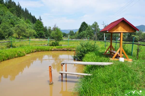 У реки Прут в Микуличине расположилась частная усадьба “Хатина Мисливця”. Усадьба состоит из 5-и двух, трехместных номеров, что размещены на 2-х этажах. Первый этаж содержит кухню с необходимой для готовки техникой и посудой, оригинальную столовую с несколькими обеденными столами, диваном, телевизором, 3 спальни для 6-и человек с большими кроватями, спутниковым ТВ, в двух спальнях добавлен диван, а в одной из них-камин. Также этаж оснащен двумя санузлами с душем или ванной. Второй этаж имеет 2 светлых номера с новой мебелью, как на первом этаже, в каждом номере есть удобный санузел с душем. Во дворе усадьбы обустроена зона отдыха с красивой беседкой, мангалом, везде много зелени, цветов, есть фонтан. Для оздоровления гостям предлагается сауна на дровах и процедуры пчелотерапии. Дополнительно предоставляются: услуги стирки, заказ питания “полупансион”, доступ Wi-Fi, трансфер, организация экскурсий, рыбалки на соседнем пруду. Усадьба располагает небольшой парковкой. Расстояние до центра Микуличина -300 м, Яремче-12 км, до ТК Буковель-25 км.