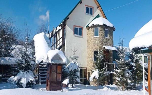 В замечательном селе Микуличин туристы увидят атмосферный коттедж «Колорит». Он расположился в уютном месте, всего в 1,5 км от ж\д станции. Коттедж располагает 3 этажами, рассчитанными для поселения 10 человек. Арендовать дом можно полностью или отдельный номер. Номера вместили мебель, технику, отдельный санузел с душем. В коттедже есть столовая и кухня, где можно приготовить вкусную еду. Кухня укомплектована инвентарем и аксессуарами. По желанию, можно заказать питание в столовой, за отдельную стоимость. Возле коттеджа расположилась колыба с гуцульскими блюдами. Так же вы увидите парковку для собственного транспорта. Посещение сауны возможно для всех гостей коттеджа. От «Колорита» к автостанции в Микуличине 1 км.
