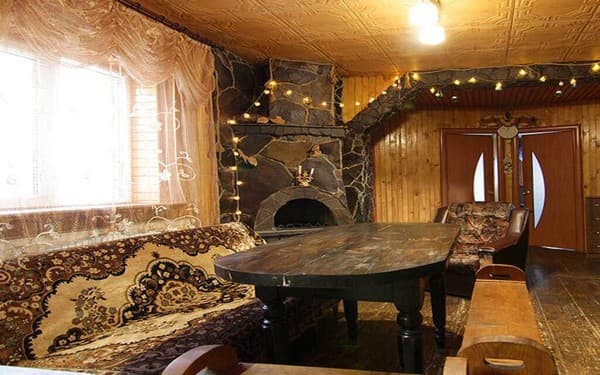 Питание производится 2 раза в день. Другие приемы пищи производятся на кухне, которая укомплектована холодильником, плитой и отделением с посудой. Обеденный стол расположился в гостиной. По периметру можно увидеть беседки, возле которых имеется мангал. В дневное время гости могут занять себя походом в лес или прогуляться вдоль русла реки. Стоянка для транспортных средств в качестве дополнительного комфорта. Отдыхающие развлекают себя играми на природе и прогулкой в ресторан, находящийся в 500 м от отеля.