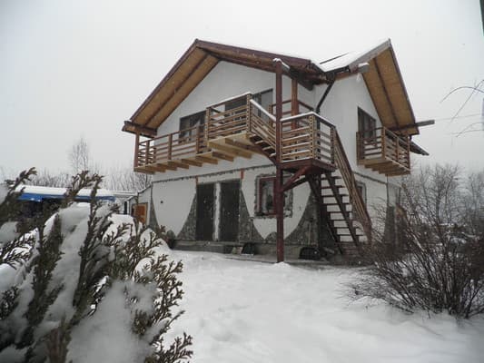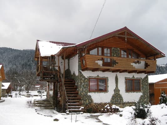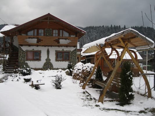 В прекрасном селе Микуличин можно поселиться в коттедже «В Кузьмича». Дом расположился в 2,5 км от ж\д вокзала. Удачное месторасположение, недалеко от горной реки Прут, в окружении горных хребтов способствует отдыху. Для поселения гостей курорта предлагаются номера в деревенском стиле. На втором этаже дома находится отдельный выход и кухня, гостиная, 3 спальни, ванная комната. Поселиться здесь могут 6-7 человек. К услугам отдыхающих предлагается: бесплатный Интернет, заказ комплексного питания, сад, кухня, мангал. Возле коттеджа находится соседская баня, за отдельную плату можно в ней попариться. Территория укомплектована теннисным столом, детской площадкой с машинками, качелями, самокатом. Для личного транспорта предлагается паркинг. Недалеко от коттеджа находится магазин, супермаркет, пивоварня, кафе. Расстояние к автостанции составляет 350 м, к Ивано-Франковскому аэропорту 65 км.