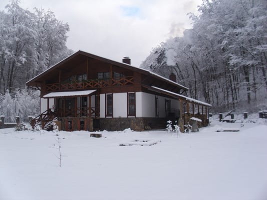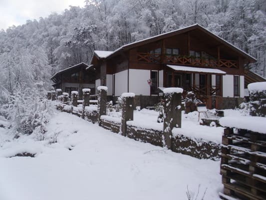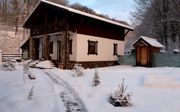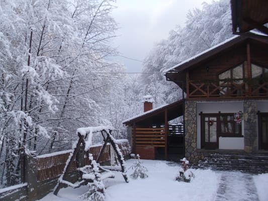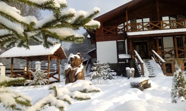 В замечательном Карпатском селе Поляна находится частная усадьба «Шале Ведмеже». Усадьба расположилась в лесу, возле горного ручейка. Расстояние к центральной части составляет 1,3 км. Для поселения предлагаются 2 коттеджа. Туристы могут выбрать 2-х этажный коттедж или дом в стиле «альпийского домика». Большой коттедж рассчитан на 7 номеров. На первом этаже расположен обеденный зал с аксессуарами для приготовления еды. В «альпийском доме» на первом этаже предусмотрена кухня с плитой и посудой, он рассчитан на 2 номера. Номера усадьбы оборудованы мебелью, техникой, ТВ, отдельной ванной комнатой с санузлом. Возможен заказ комплексного питания. На территории усадьбы находятся: мангал, беседка, качели. От «Шале Ведмеже» к магазину 400 м, к подъемнику 900 м, к Сваляве 10 км.