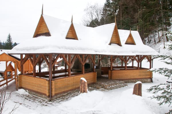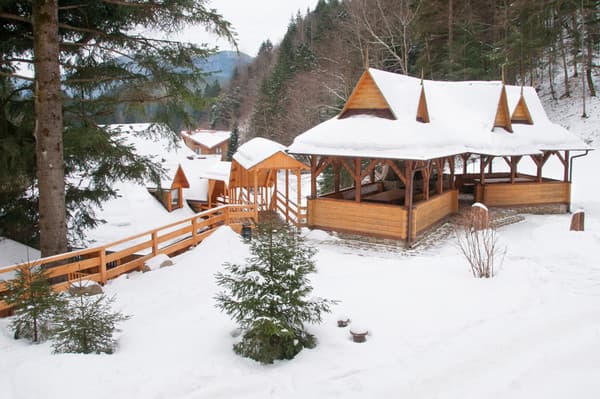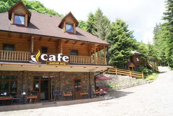 В карпатском национальном парке у популярного водопада Женецкий Гук, рядом с поселком Татаров находится частная усадьба “Дикий мед”. Оригинальный дом на 5-и этажах предлагает 18 двухместных номеров от “стандарта”до “люкса”. Первый этаж отеля располагает стойкой регистрации в просторном холле, комнатой отдыха Выше расположены номера с двуспальной кроватью, телевизором, санузлом, более просторные улучшенные номера, что дополнены раскладным креслом, диваном. Двухкомнатные номера “люкс” имеют балконы, кондиционеры, гостиную с мягкой частью и спутниковым ТВ, спальню с двуспальной кроватью, большим шкафом и современную ванную комнату с полным набором туалетных принадлежностей. Гостям бесплатно предоставляется лёгкий завтрак. Гостиница известна своей колыбой в старинном стиле с приятной обстановкой и вкусными блюдами. Среди лесных тропинок расположены открытые беседки, где можно перекусить или просто подышать чистейшим воздухом. Рядом с беседками можно пользоваться мангалом. На территории оборудована детская площадка с горкой и качелями. Для оздоровления предлагается посещение сауны с бассейном и процедуры массажа. Из спортивных развлечений доступен настольный теннис, для веселого времяпрепровождения предлагается караоке и настольные игры. Дополнительные услуги: трансфер, услуги прачечной, уход за детьми, аренда конференц-зала, организация досуга, место на автостоянке. Расстояние до центра Татарова-4 км, ГК Буковель-14 км, до бугельного подъемника Ворохты-7 км.