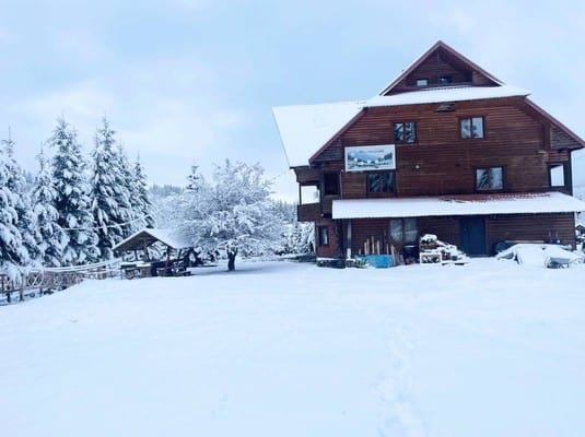 В тихом районе Ворохты, у леса, находится частная усадьба “Під Говерлою”. Усадьба насчитывает 10 двухместных, семейных номеров, для 4-х и 6-и гостей, что размещены на 4-х этажах дома из дерева. Первый этаж занимает просторная гостинная-столовая с камином, диваном, большим столом, телевизором и общий санузел. На каждом этаже размещены холл с балконом, мягкой мебелью, холодильником и одно, двух и трехкомнатные номера. Номера для 2-х гостей оснащены удобной мебелью, телевизором со спутниковым тв и удобными ванными комнатами. Двухкомнатные номера дополнены раскладным диваном, столами, чайником, а трехкомнатные-кроватями, мягким уголком. В усадьбе можно отдохнуть на большой террасе, в саду в беседках, воспользоваться мангалами. Гостям доступны услуги: трансфера к подъемникам, глажки, заказ домашнего питания, организации походов на Говерлу, прогулок, прокат снаряжения. До продуктового магазина и кафе пару минут езды. Расстояние к подъемнику Авангард-7 км, до ТК Буковель-27 км.