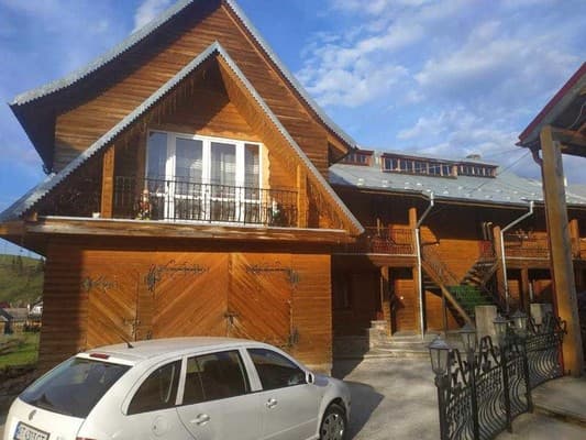 В центральной части живописной Ворохты, находится частный дом "Топорик". Усадьба состоит из 5-и номеров, рассчитанных на проживание 10 гостей, что размещены на 2-х этажах. На первом этаже есть просторная столовая с красивым столом, 3 номера с двуспальной кроватью, шкафом, телевизором со спутниковыми каналами и общей ванной комнатой. Один из номеров дополнен раскладным диваном. Второй этаж занимают две уютные спальни, где добавлены диван или раскладное кресло и санузел на 2 номера. Во дворе можно отдохнуть в открытой беседке, в саду, на качели и готовить в настоящей уличной печи. Для оздоровления предлагается сауна с небольшим бассейном. Дополнительно предоставляются: услуги трансфера, заказ комплексного питания, организация походов за грибами, ягодами, прогулок на лошадях, машинах. При усадьбе обустроена автостоянка и магазин. Расстояние до центра города-1 км, к подъемнику в Ворохте-2 км, до ГК Буковель-21 км.