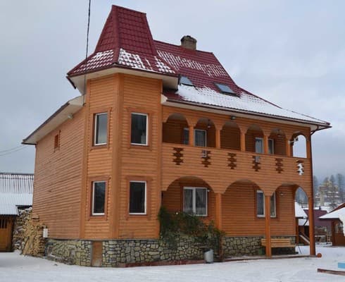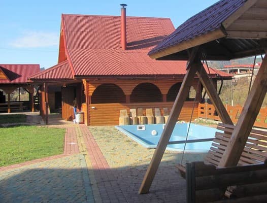 Недалеко от знаменитых виадуков Ворохты, находится частная усадьба "У Васюты". Оригинальный коттедж предлагает поселиться 23-м гостям в 7 комфортных номерах, расположенных на 3-х этажах. Первый этаж имеет кухню-столовую, с необходимой кухонной техникой и посудой для готовки и обеденный стол, а также сауну на дровах, что может вместить до 10 гостей. Второй этаж занимает холл с диваном и телевизором, общая ванная комната и 2 двухместных номера с двуспальной кроватью, номер для семьи, дополненный односпальной кроватью и большой номер для 7 гостей с удобной мебелью и камином. На третьем этаже размещены 4 двухместных номера с двуспальными кроватями и общим санузлом. На красиво обустроенной территории усадьбы есть зоны отдыха, игровая площадка для детей, бесплатная парковка. Любителям спортивного досуга можно посоревноваться в настольном теннисе и в бильярде. Из дополнительных услуг доступны: услуги прачечной, заказ трансфера, заказ питания полупансион для группы больше 10 человек. До магазина можно дойти за 2 мин, а до кафе и ресторана за 5 мин. Расстояние до центра Ворохты-2 км, до подъемника Авангард-1 км, до ГК Буковель-22 км.