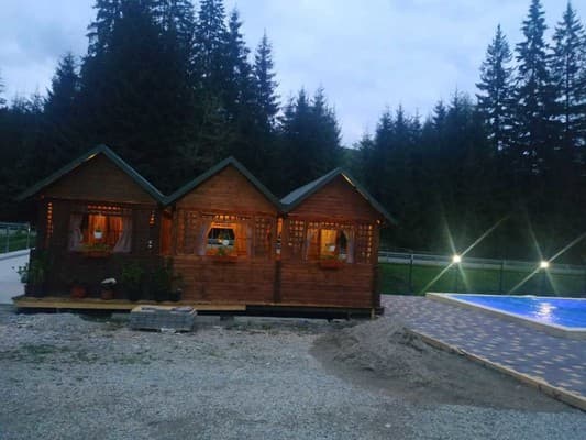 В тихом районе карпатской Яблуницы, недалеко от подъемников, находится частная усадьба “Прутец”. Усадьба состоит из двух коттеджей, в одном из которых 14, а в другом 5 двух и трехместных номеров категории от “стандарта” до “люкса”. В большом коттедже можно разместить до 25 гостей. Здесь размещены гостиные с мягкой мебелью, 3 стандартные номера с одно двуспальными кроватями, шкафами, телевизорами и общими ванными комнатами, 4 “полулюкса”, в которых добавлены односпальные кровати или раскладные кресла и ванная комната в номере, а также несколько двухкомнатных номеров “люкс”, дополненные раскладным диваном, столом, холодильником и удобным санузлом. Второй коттедж располагает холлом с телевизором и большим столом для обедов, кухонной зоной с барной стойкой и номера для 2-х и 3-х гостей с удобной мебелью, спутниковым ТВ и ванными комнатами с душевыми кабинами. При усадьбе работает бар, можно заказать зал для банкетов, а также воспользоваться мангалом во дворе. В качестве оздоровления можно посетить сауну на дровах с бассейном. По всей территории есть бесплатный Wi-Fi. Дополнительно гостям доступны: транспортные услуги, заказ питания, пункт проката снаряжения, заказ инструктора, охраняемая автостоянка. Расстояние до бугельного подъемника Динамо-4 км, до подъемников ГК Буковель-12 км.