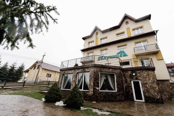 На Яблуницком перевале, рядом с лесом расположен роскошный отель “Яблуница”. Комплекс предлагает 16 номеров разной категории, рассчитанные на проживание от 2-х до 4-х гостей, что размещены в основном корпусе и “полулюксы”- в 2-х автономных коттеджах. Двухместные номера, оформленные в светлых тонах, оснащены новой мебелью, телевизором и ванной комнатой. Номера для 3-х гостей дополнены дополнительным спальным местом и с общим санузлом на несколько номеров. В номерах для 4-х гостей две комнаты, в которых есть двуспальная кровать, диван, телевизор и удобный санузел. Коттеджи на первых этажах имеют гостиные с камином, мягким уголком и телевизором, а также двухместные номера с большим кроватями, диванами и спутниковым ТВ. Современные ванные комнаты расположены в каждом номере. Территория отеля обустроена открытыми беседками, игровой зоной для детей, а также рестораном, где есть летняя терраса, что открывает потрясающие виды на горы, танцпол и подают вкусные блюда национальной кухни. Для оздоровления предлагается русская баня с бассейном, а также бассейн с подогревом и гидромассажем. Дополнительно гостям доступны: транспортные услуги, заказ питания, трансфер, организация досуга, прокат снегоходов и снаряжения, бесплатное парковочное место. Расстояние до бугельного подъемника “Франковский”-500 м, до подъемника “Коза”-2 км, до ГК Буковель- 8 км.