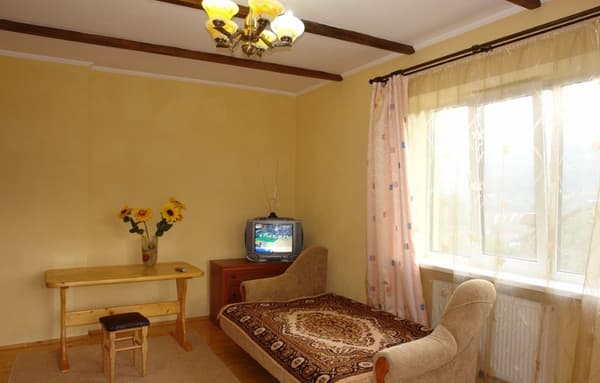 Недалеко от центральной части карпатского Яремче, расположена частная усадьба”У Лилии”. Кирпичный коттедж состоит из 7-и двух и трехместных номеров категории “стандарт” и “эконом”. В стандартных номерах есть одно и двуспальные кровати, шкаф, телевизор со спутниковыми каналами и доступом Wi-Fi. Ванные комнаты с душевыми кабинами, оснащены всем необходимым. В эконом варианте номеров, ванные комнаты расположены на этаже. Любителям отдыха на природе, во дворе предлагается беседка и мангал. Недалеко от усадьбы находится сауна, в которой можно хорошо попариться и расслабиться. Гостям доступны: заказ комплексного питания и заказ трансфера. Кафе и магазины расположен в шаговой доступности. Усадьба располагает своей парковкой. Расстояние к бугельному подъемнику Яремче-2,5 км, до подъемников ТК Буковель - 35 км.