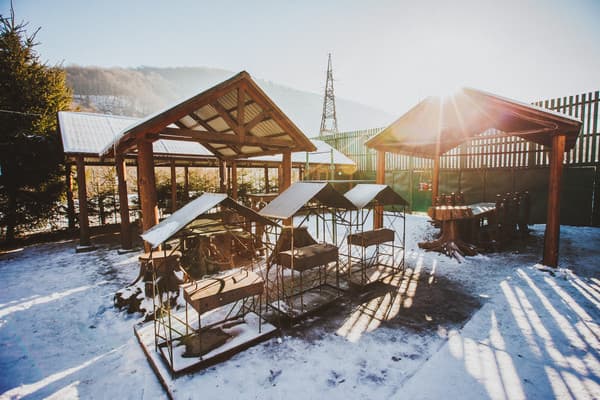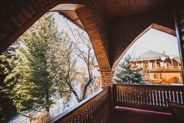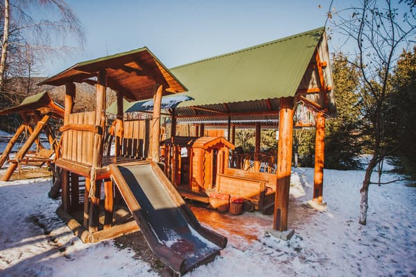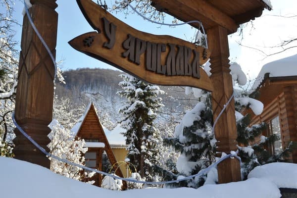 Вблизи красивых горных вершин и быстрой реки Прут, в Яремче, находится гостиница "У Ярослава". В 4-х деревянных коттеджах размещены 15 номеров от стандарта до высшей категории, в которых можно разместить от одного до шести гостей. Номера “стандарт”с отдельным входом, оснащены удобной мебелью, холодильником, телевизором и компактной ванной комнатой. В “полулюксах” комнаты и ванная просторнее и добавлен диванчик. Номера “люкс” оснащены большой кроватью, просторной террасой, камином и диваном, а ванная комната - угловой ванной. Двухкомнатные “люксы” имеют раскладной диван и мини-кухню, в которой можно готовить.Трехкомнатные апартаменты располагают тремя спальнями, несколькими санузлами и гостинной - столовой с камином и большим телевизором. Также здесь есть полноценная кухня, приспособленная для самостоятельного приготовления еды. По всей территории доступен Wi-Fi. В небольшом баре можно заказать классические блюда. А во дворе отдохнуть в беседках, у декоративных бассейнов и водопада. Есть возможность поиграть в настольный теннис, а детям повеселиться на детской площадке. Можно приготовить мясо на мангале, а вечером расслабится в местной сауне на дровах. Из дополнительных услуг доступны прокат снаряжения, заказ трансфера, бесплатное парковочное место. Расстояние к подъемнику Яремче Бугельный - 3 км, до подъемников ГК Буковель - 30 км, до ж/д станции Яремче-0,9 км.